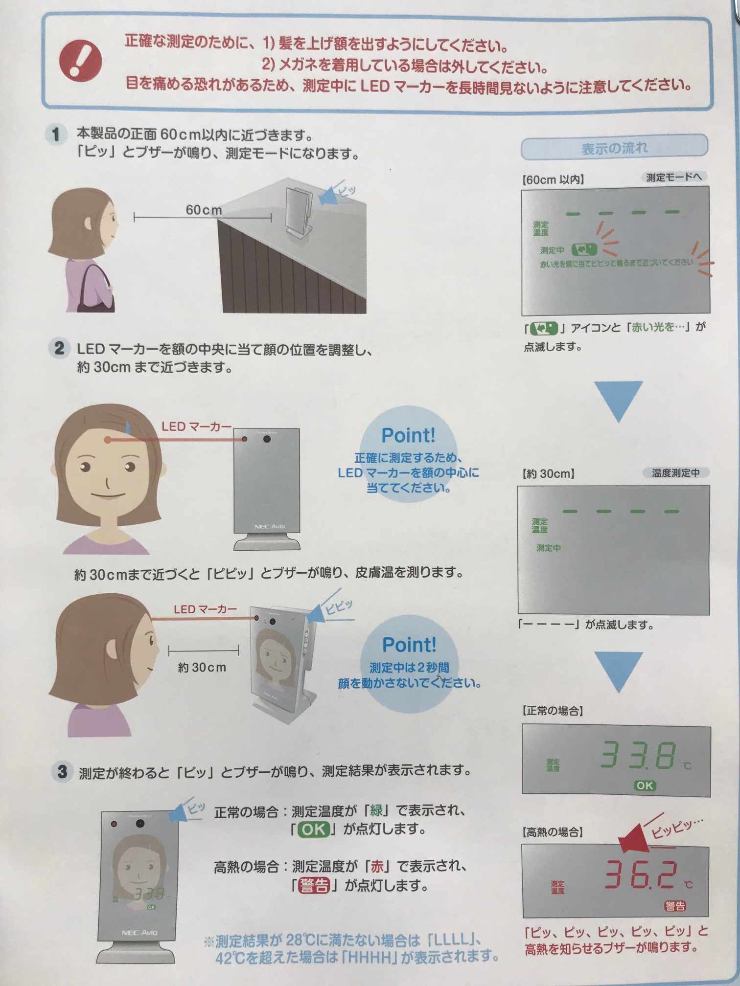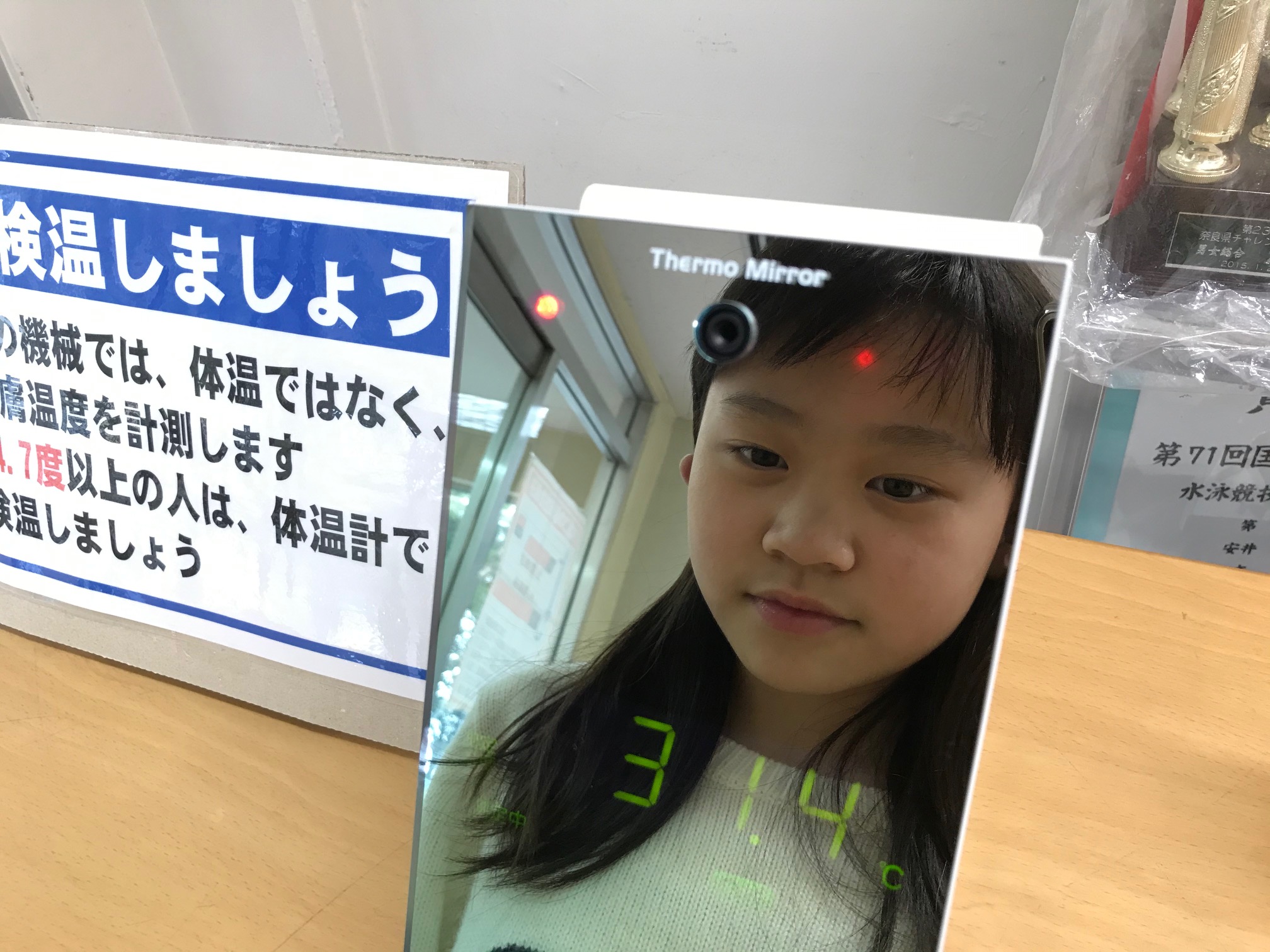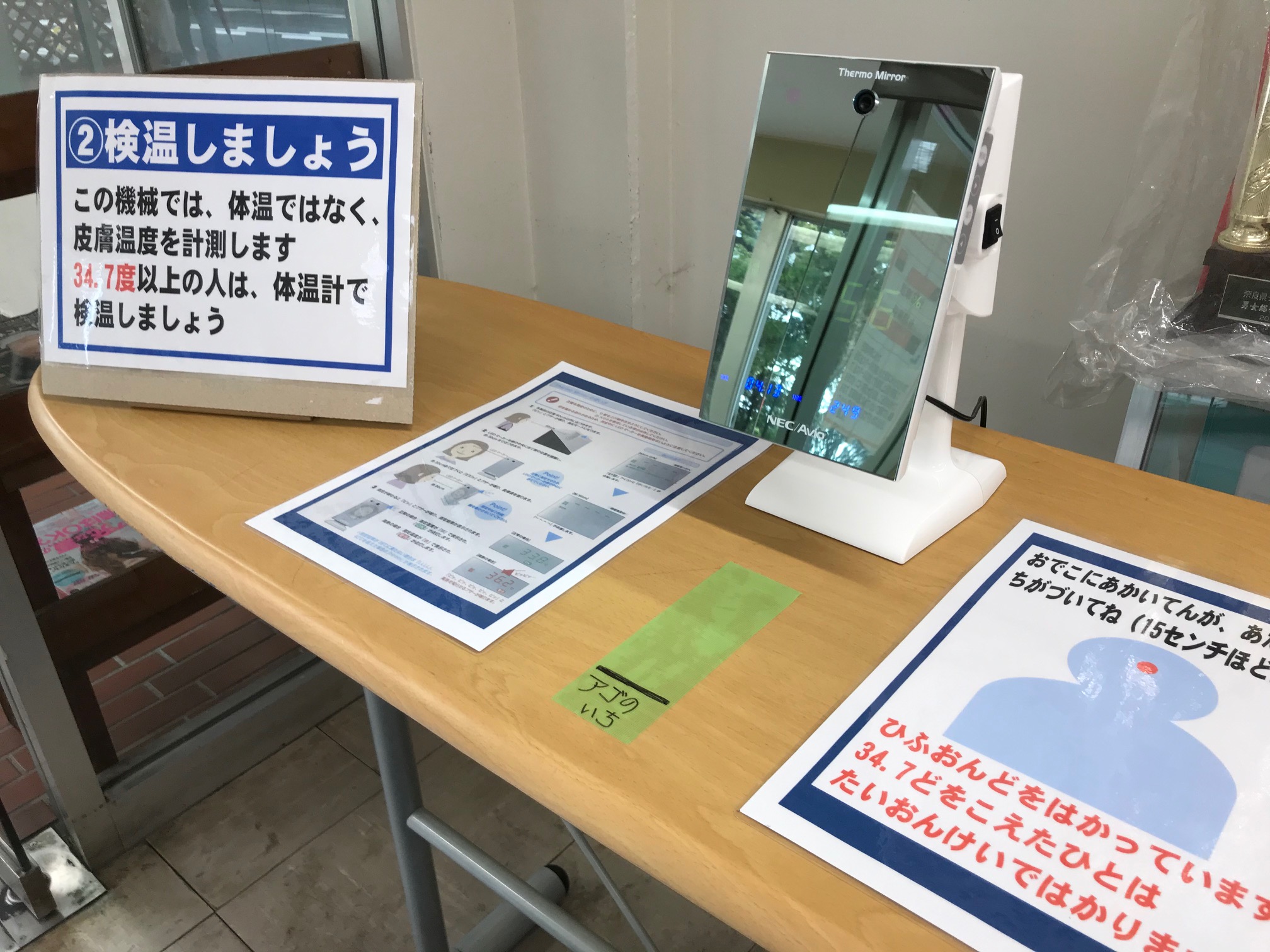 ・34.7度以上の人は再度、体温計ではかります